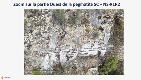 In 2012, Nemaska Lithium conducted a successful exploration campaign. In total, 9 sites were mechanically stripped for a surface area of approximately 13,000 m2. There were 29 channels completed over 739 metres for a total of 506 samples (selected results below, for full results see the Nemaska Lithium news release dated November 5, 2012).